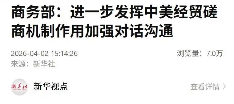 在2日举行的例行新闻发布会上,商务部新闻发言人何亚东在回答关于中美经贸关系的提问时表示,去年以来,在两国元首重要共识战略引领下,中美经过六轮经贸磋商,在经贸领域达成一系列磋商成果,为双边经贸关系和世界经济注入了更多稳定性和确定性。事实充分证明,坚持相互尊重、平等对话协商,是弥合分歧、解决问题的最好方式。中美双方应落实好两国元首重要共识以及前期经贸磋商成果,进一步发挥中美经贸磋商机制作用,加强对话沟通,妥善管控分歧,拓展务实合作,促进中美经贸关系健康、稳定、可持续发展。来源:新华社